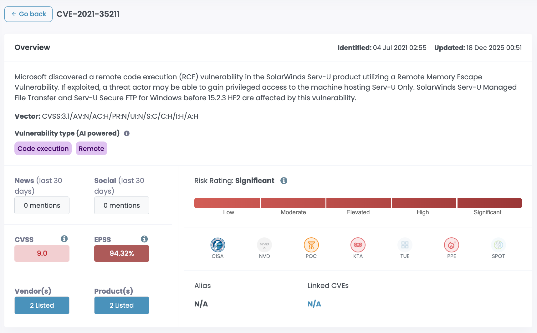 High-profile SolarWinds vulnerabilities in recent years have attracted serious attention. CVE-2024-28995, CVE-2021-35211, and CVE-2020-10148 have all been linked to nation-state actors and sophisticated criminal groups.